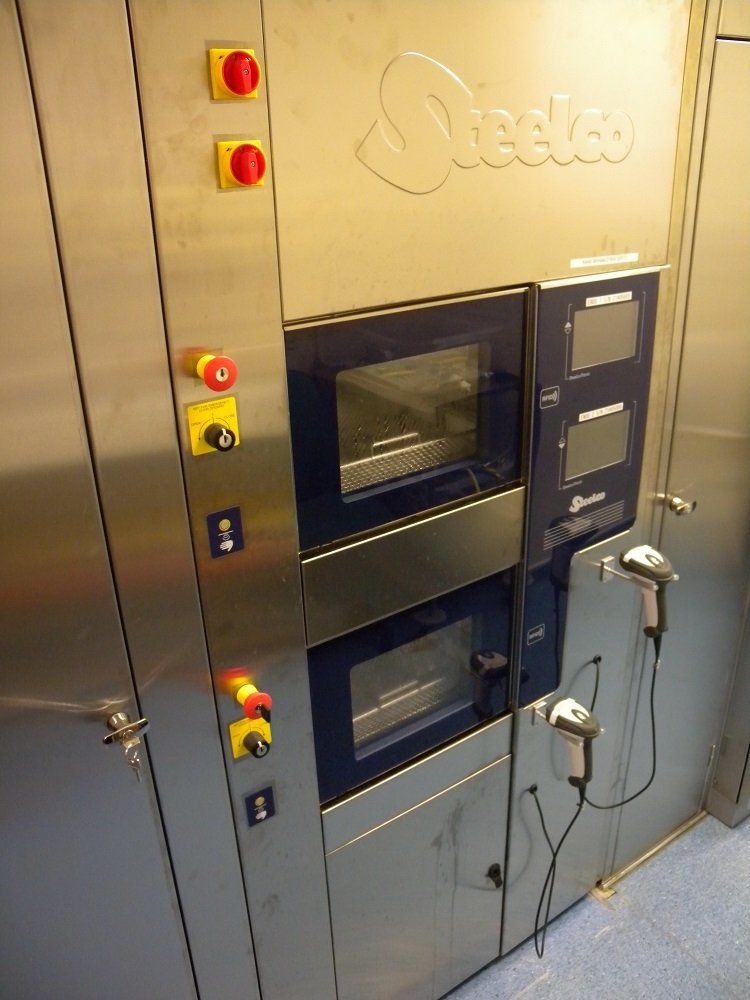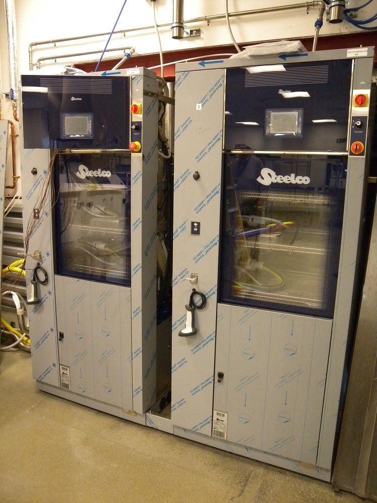 Steelco’s EWDs have vertical sliding doors which will allow the technicians more room to operate. As the new machines are more efficient and have shorter cycle times, it was only necessary to install them on one wall of the L-shape. This has created 50% more space in the area, which will be used as packing space, etc giving the users a more comfortable working environment.